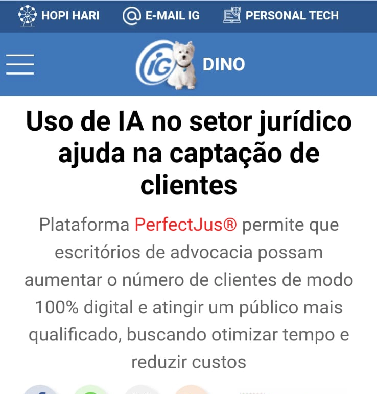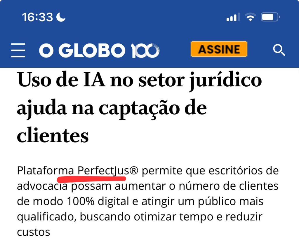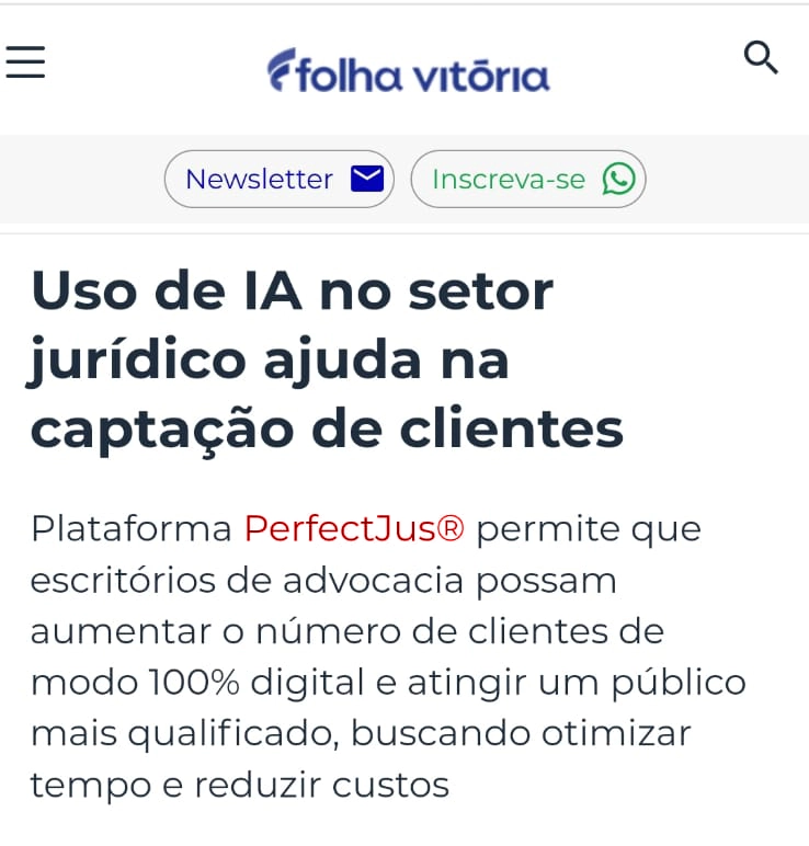 A PerfectJus® utiliza inteligência artificial para gerenciar e automatizar a captação de clientes e a organização do escritório. Ela realiza tarefas que normalmente seriam feitas por uma equipe de 30 a 50 pessoas.