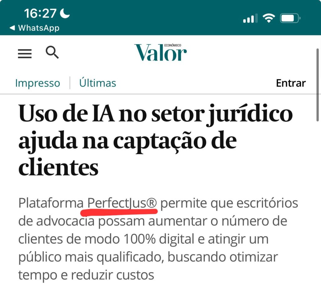 PerfectJus é uma abordagem moderna e inovadora para a gestão de escritórios de advocacia. Utilizando inteligência artificial, nosso sistema cuida da captação de clientes e da organização do seu escritório de maneira automatizada. Imagine ter uma solução que trabalha para você o tempo todo, permitindo que você se concentre no que realmente importa: atender bem seus clientes e expandir sua prática.